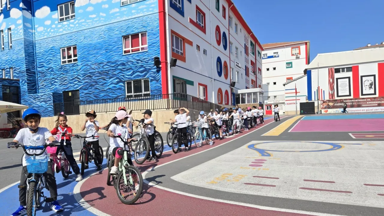 Beylikdüzü Büyükşehir İlkokulu’nda 8 yıldan bu yana uygulanan “Pedala İlk Adım” projesi, ilköğretim çağındaki çocuklara temel bisiklet eğitimi vererek fiziksel gelişimlerine katkı sağlarken, bisiklet kültürünü küçük yaşlarda kazandırmayı amaçlıyor. Öğrencilerin motor becerilerini geliştirmek, çevre bilincini artırmak ve ulaşım alışkanlıklarını dönüştürmek hedefiyle bisikleti bir eğitim aracı olarak konumlandırıyor. Bu vizyon doğrultusunda okul, bisiklet derslerine, atölye alanlarına ve eğitici iş birliklerine yatırım yaparak öğrencilerine sürdürülebilir bir yaşam biçimi sunmayı hedefliyor. Öğrenciler, “Bisikletim ve Ben” eğitimi kapsamında okul bahçesindeki bisiklet parkurunda bisiklet dersini yapıyor.