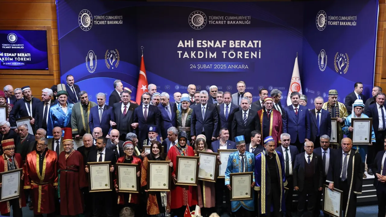 Ticaret Bakanlığı'nda düzenlenen kökleri yüzyıllar öncesine dayanan ve Anadolu topraklarından doğup kadim bir kültür haline gelen Ahileri anmak üzere düzenlenen Ahi Esnaf Beratları Takdim Töreni’ne Ticaret Bakanı Ömer Bolat'ta katıldı.ANKARA (İGFA) -Ticaret Bakanlığı, Ahileri onurlandırmak üzere "Ahi Esnaf Beratları Takdim Töreni"’ düzenledi.