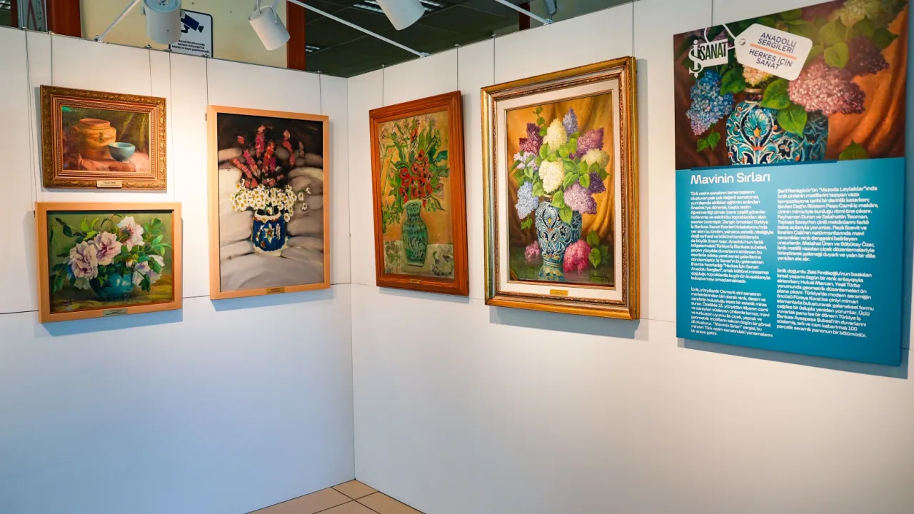 Türkiye İş Bankası İznik Şubesi'nde sergilenen 'Mavinin Sırları' seçkisi usta sanatçılarımızın çiniden ilham aldıkları eserleri bir araya getirdi.