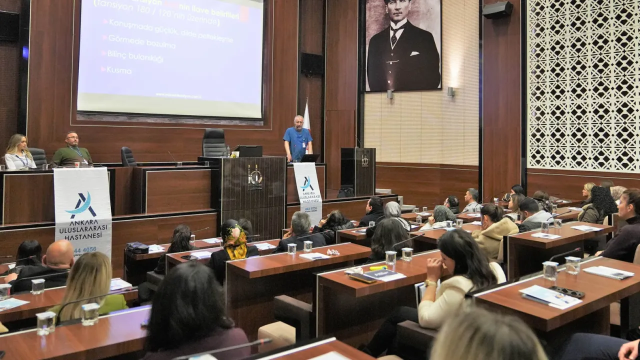 Alanında uzman isimler tarafından verilen eğitimde konuşan Kardiyoloji Uzmanı Prof. Dr. Mete Alpaslan, 'Yüksek Tansiyon ve Kalp Hastalıklarının Belirtileri' başlıklı sunum yaparak tansiyon değerleri, yüksek tansiyonun zararları, kalp hastalıklarının belirtilerini detaylı olarak anlattı. Prof. Dr. Alpaslan, yüksek tansiyonun çoğunlukla belirti vermeden ilerlediğini, düzenli takip ve gerektiğinde ilaç tedavisinin önemini vurguladı.