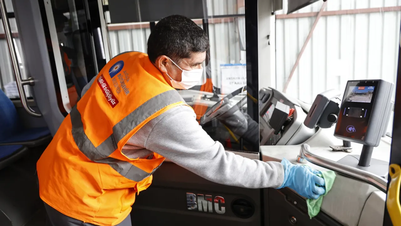 Antalya Büyükşehir Belediyesi, Antalyalılara daha iyi, temiz ve hijyenik bir ulaşım hizmeti sunmak için toplu ulaşım araçlarını titizlikle temizleyerek, seferlere hazırlıyor.