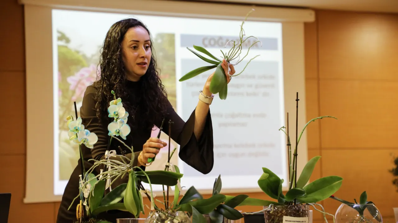 Yoğun ilgi ile karşılanan eğitimde, orkidelerin sulama sıklığı ve yöntemleri, uygun ışık koşulları, ortam sıcaklığı, nem dengesi, saksı ve toprak seçimi gibi başlıklarda kapsamlı bilgiler paylaşıldı.