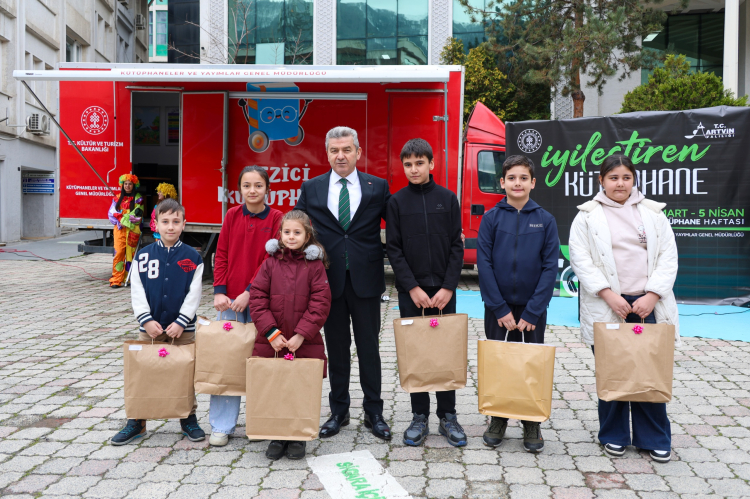 Konuşmaların ardından Artvin Valisi Turan Ergün kütüphanelerden en çok kitap alarak okuyan öğrencilere hediye verildi.