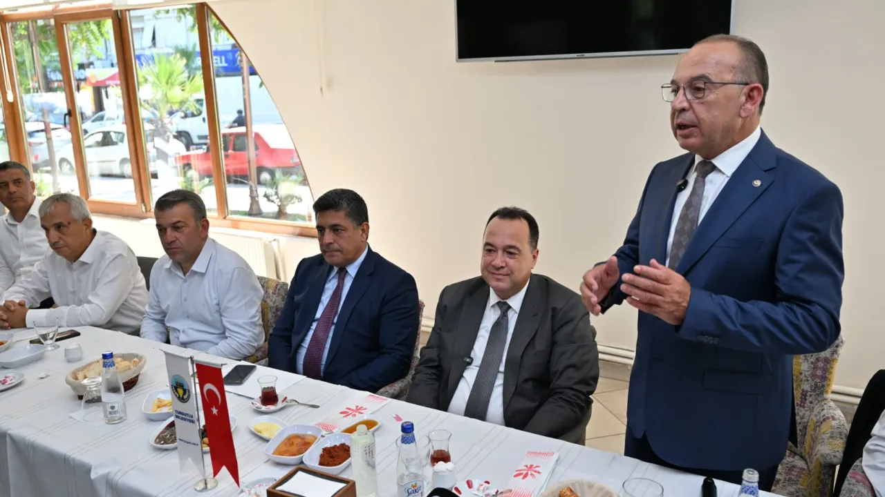 Merhum Başkan Ferdi Zeyrek’i anarak sözlerine başladı Turgutlu Belediye Başkanı Çetin Akın, ziyareti nedeniyle Başkan Dutlulu’ya teşekkür ederek, “Büyükşehir Belediye Başkanımız Besim Dutlulu’nun öncülüğünde, 17 ilçe belediyesi ve muhtarlarımızla birlikte Manisa’mıza en iyi hizmeti sunmak için el ele, omuz omuza çalışacağız. Ortak akılla, birlikte üreterek bu kenti daha ileriye taşıyacağız” ifadelerini kullandı. Akın, yaz mevsimiyle birlikte artan orman yangınlarına da değinerek vatandaşlara duyarlılık çağrısında bulundu.