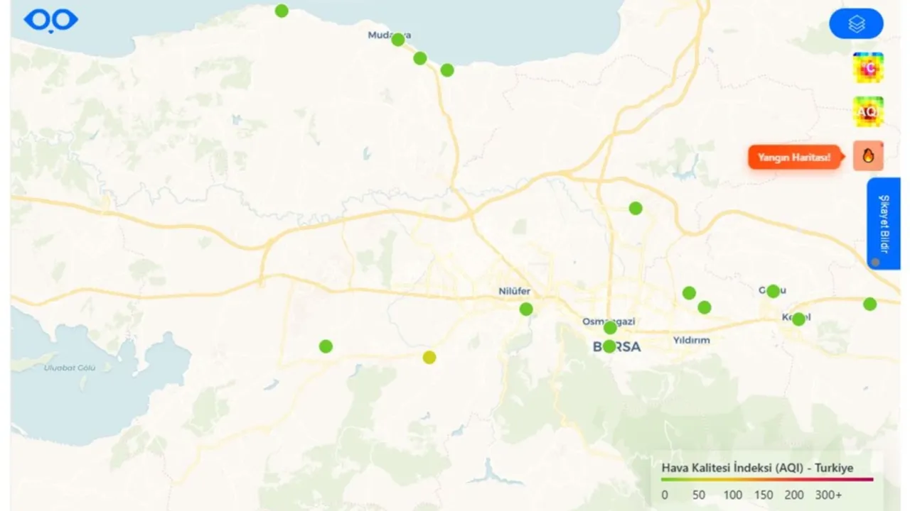 Bursa Büyükşehir Belediyesi, hava ve gürültü kirliliğinin tespiti için geçtiğimiz aylarda devreye aldığı hava kalitesi izleme sistemine yangın izleme sistemini de entegre etti. Bursa’daki ve Türkiye’deki tüm yangın noktalarını anlık olarak gösteren sistemi, Büyükşehir Belediyesi’nin internet sitesi üzerinden herkes kullanabilecek.BURSA (İGFA) - Bursa’nın daha sağlıklı ve daha yeşil olması için çalışmalarını aralıksız sürdüren Büyükşehir Belediyesi; havası ve suyu temiz bir kent için teknoloji kullanmaya devam ediyor. Geçtiğimiz aylarda hava kirliliği parametrelerinin ve gürültü kirliliğinin tespitine yönelik mobil izleme ağı oluşturan ve mobil ekiplerle 14 ilçede çevresel gürültü ölçümleri yapan Büyükşehir Belediyesi, hava kalitesi izleme sistemine yangın izleme sistemini de entegre etti.