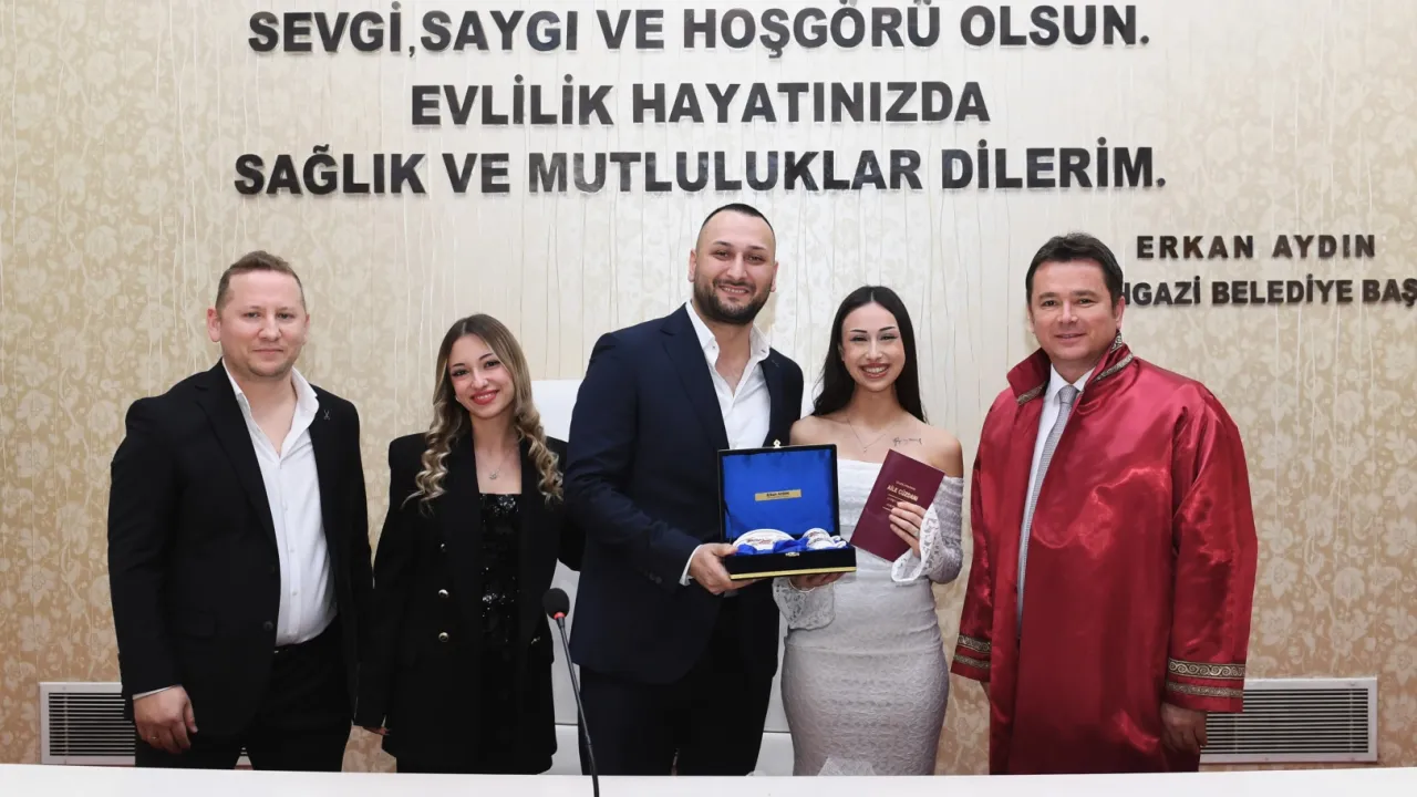 14 Şubat Sevgililer Günü’nde evlenen çiftlere sürpriz yapmak isteyen Osmangazi Belediye Başkanı Erkan Aydın, Osmangazi Belediyesi Merinos Nikah Dairesi’nde Minel Kaya ve Oğuzhan Yavuz çiftinin nikahını kıydı. En özel günde nikah tarihi alan çift nikahlarını kıymak için Osmangazi Belediye Başkanı Erkan Aydın’ı karşılarında görünce büyük mutluluk yaşadı. Başkan Aydın, Kaya ve Yavuz, çiftinin nikahını aile bireyleri ve şahitlerin huzurunda kıyarak çiftin mutluluğuna ortak oldu.