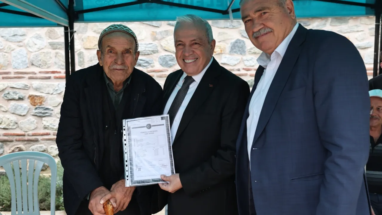 Konuşmaların ardından Başkan Şadi Özdemir ve Ürünlü Mahalle Muhtarı Kadri Beki, vatandaşlara tapularını teslim etti.