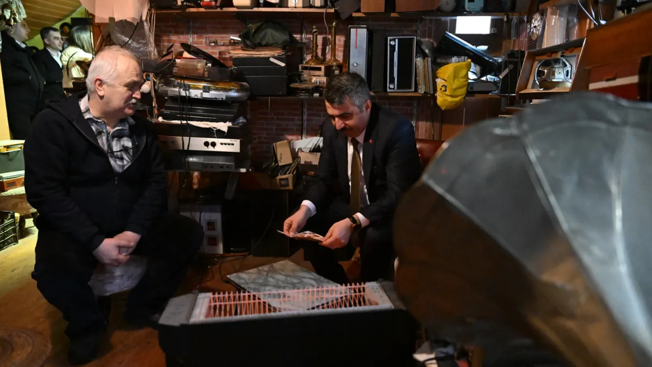 Bursa'da Yıldırım Belediye Başkanı Oktay Yılmaz, 40 yıldır eski radyo, televizyon ve gramofonlara yeniden hayat vererek tozlu raflardan inmelerini sağlayan koleksiyoner Ahmet Ali Şağın’ı ziyaret etti.BURSA (İGFA) - Yıldırım Belediye Başkanı Oktay Yılmaz, Bursa'da Yeşil Caddesi’ndeki atölyesinde 40 yıldır eski radyo ve gramofonları tamir edip çalışır hale getiren son usta 'Nostalji Doktoru' olarak tanınan Ahmet Ali Şağın’ın (63) misafiri oldu.