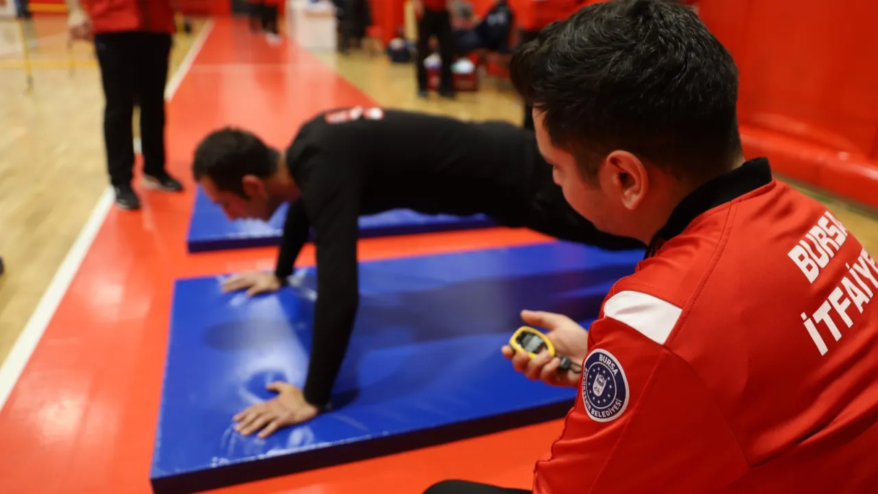 Bursa Büyükşehir Belediyesi’nin 100 itfaiye eri alımı için açtığı sınava giren 450 aday, uzman itfaiyeciler tarafından özel olarak hazırlanan parkurda fiziki dayanıklılık testine tabi tutuldu. Ağırlık taşıma, merdiven çıkma, slalom koşu, şınav, mekik ve araç kullanmadaki hünerlerini gösteren adaylar, ilk 100’e girebilmek için ter döktü.BURSA (İGFA) -Bursa Büyükşehir Belediyesi, vatandaşların can ve mal güvenliğini doğrudan etkileyen ve en önemli birimlerin başında gelen itfaiye teşkilatını güçlendirmeye devam ediyor.