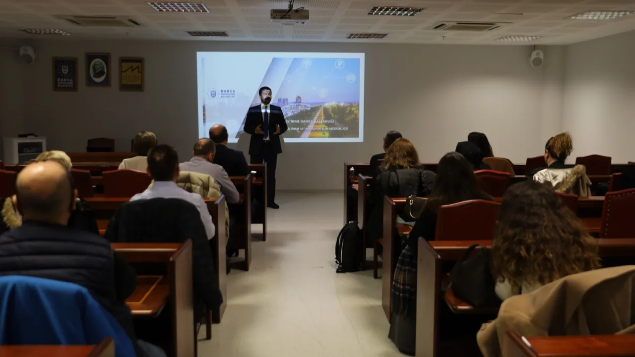 Araştırma, Geliştirme ve İnovasyon Şube Müdürü Salih Sadık Yaşar tarafından Büyükşehir Belediyesi’nin Ar-Ge alanındaki çalışmaları hakkında bilgi verildi. Bursa ve çevre kentlerdeki büyük şirketlerde kurumsal inovasyon ve girişimcilik faaliyetleri yürüten profesyonelleri buluşturduklarını anlatan Yaşar, Bursa Büyükşehir Belediyesi’nin kentin geleceğini inovasyonla şekillendirmeye çalıştığını belirterek bir araya gelen profesyonellerle yeni fikirlerin oluşmasını sağlamaya çalıştıklarını ifade etti.