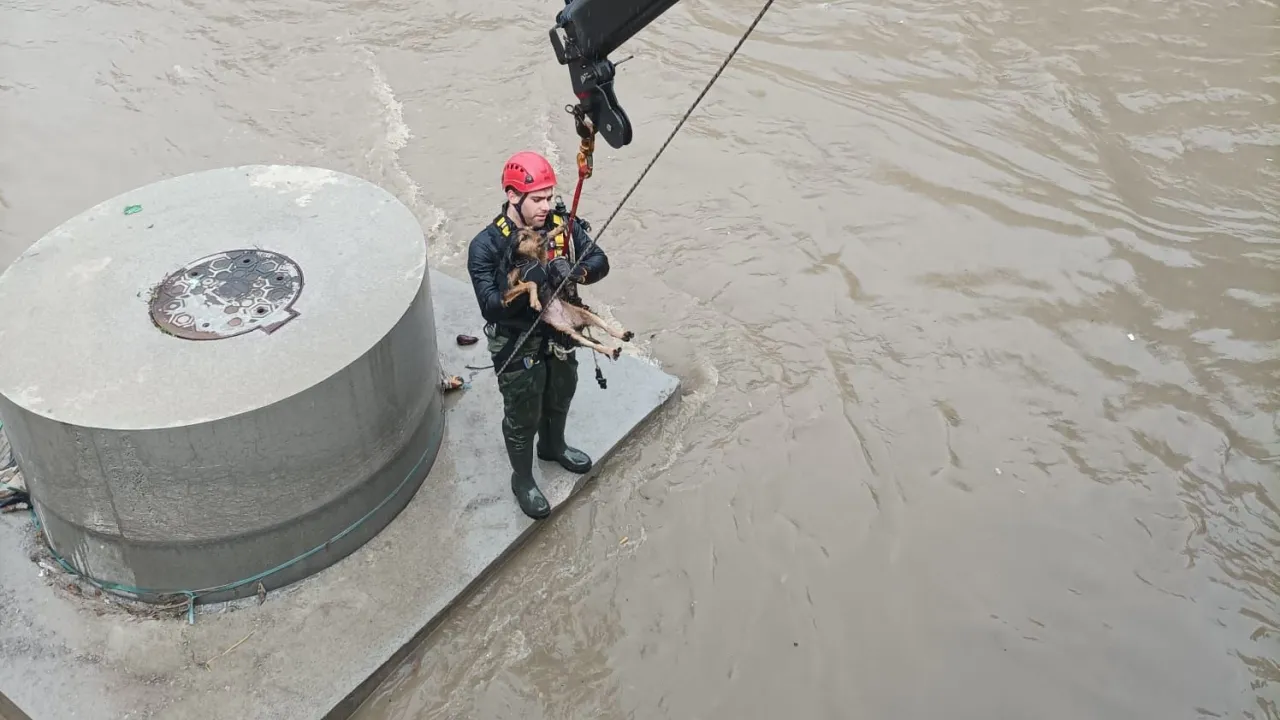 Karabağlar Aşık Veysel Mahallesi'nde dereye düşerek mahsur kalan bir köpek itfaiye ekiplerinin hızlı müdahalesiyle dakikalar içinde kurtarıldı.