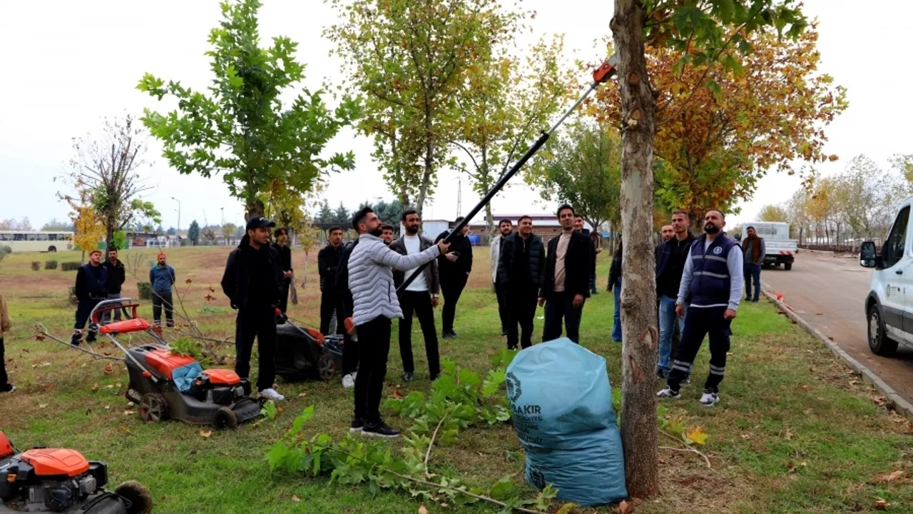 Diyarbakır Büyükşehir Belediyesi, Dicle Üniversitesi öğrencilerine uygulamalı ağaç ve çalı budama ile çim biçme eğitimi verdi.