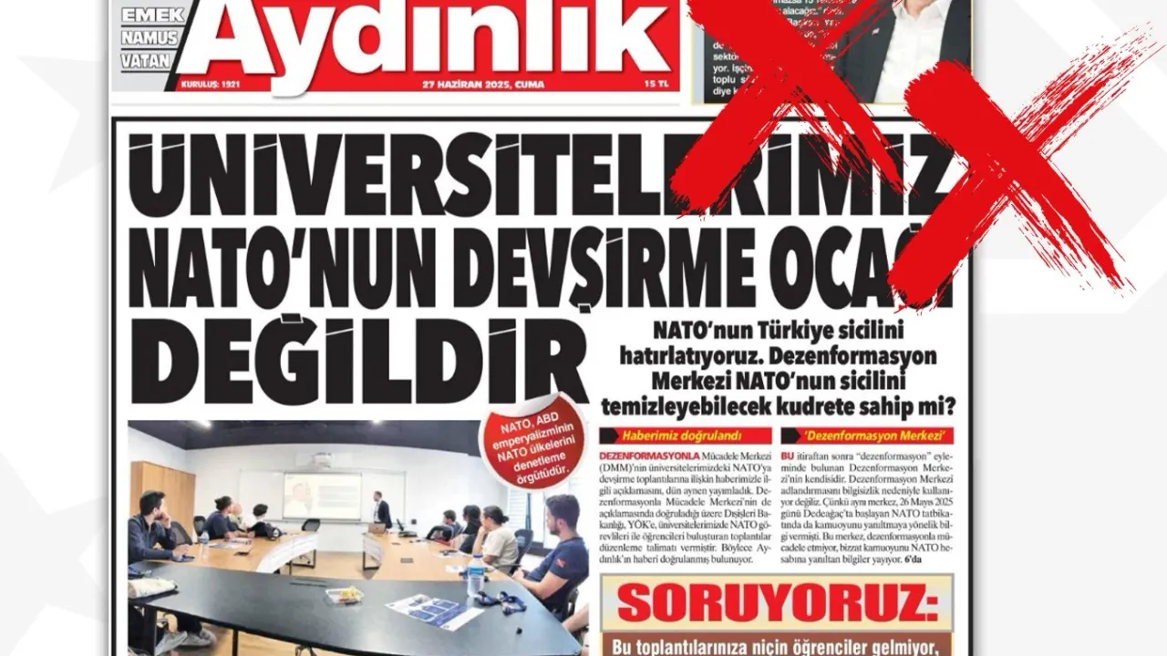 Dezenformasyonla Mücadele Merkezi (DMM), Aydınlık gazetesinde yayımlanan “NATO karargâhından yönetilen Dezenformasyon Merkezi” başlıklı habere ilişkin kamuoyunu bilgilendirme açıklaması yayımladı.ANKARA (İGFA) - DMM’nin Türkiye Cumhuriyeti Devleti'nin milli menfaatleri doğrultusunda, ulusal güvenlik ve kamu düzeni aleyhine yürütülen dezenformasyon kampanyalarıyla mücadele görevini yürüttüğü vurgulandı.