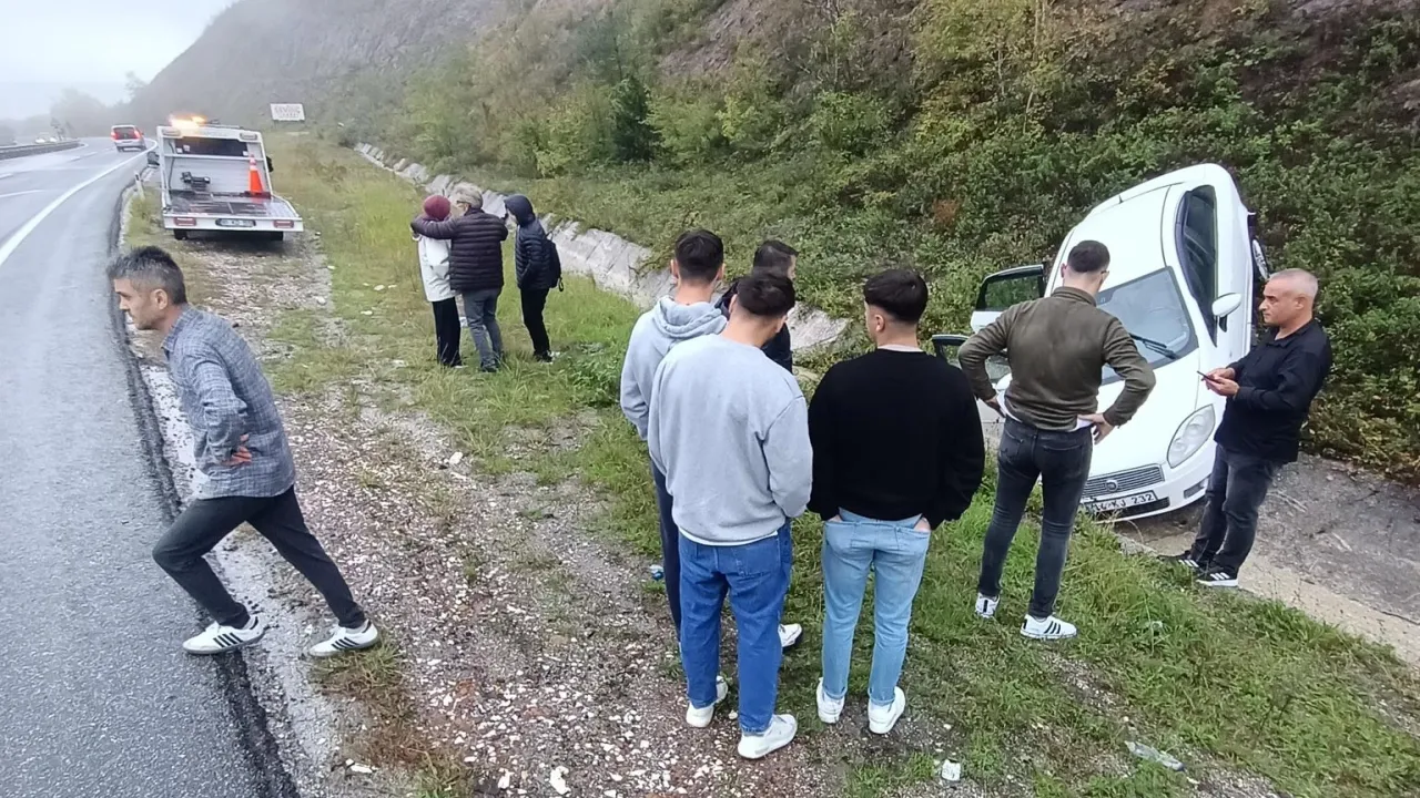 Düzce-Akçakoca Karayolu'nda Pazar günü meydana gelen trafik kazasında, kaygan zemin nedeniyle kontrolden çıkan bir otomobil yoldan çıktı. Araçta bulunan aile büyük bir şans eseri kazayı yara almadan atlattı.
