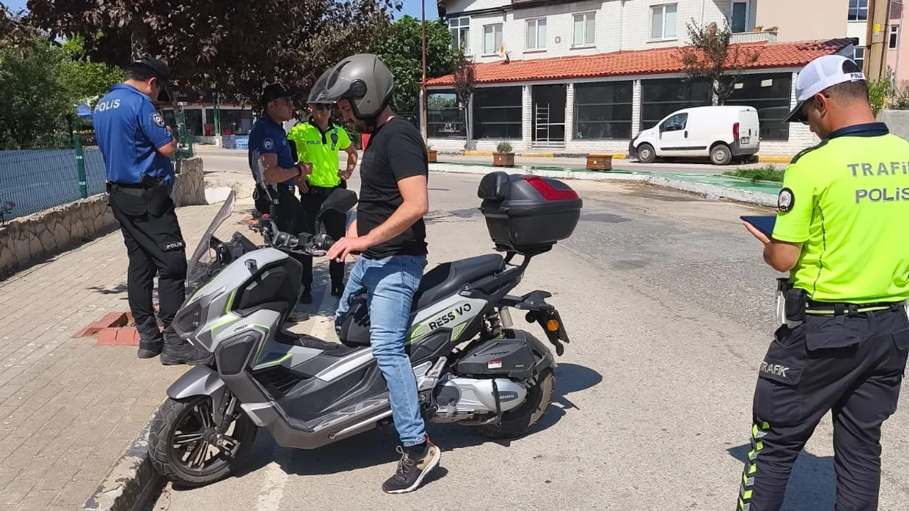 Edirne'de Keşan İlçe Emniyet Müdürlüğü’nün gerçekleştirdiği motosiklet ve motorlu bisiklet denetimlerinde, kurallara uymayan 11 sürücü ve 9 araç sahibine toplam 134 bin 565 TL idari para cezası uygulandı.Erdoğan DEMİR / EDİRNE (İGFA) - Keşan İlçe Emniyet Müdürlüğü, ilçe genelinde motosiklet ve motorlu bisikletlere yönelik kapsamlı bir trafik denetimi gerçekleştirdi.
