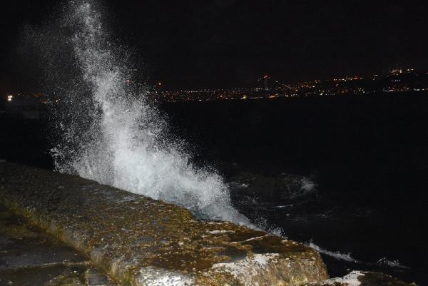 İSTANBUL Boğazı kıyılarında lodos nedeniyle dalgaların sahile çarpmasıyla su seviyesi 3-4 metre yüksekliğe kadar çıktı.Dalgalar bazı vatandaşlar tarafından ilgiyle izlendi.