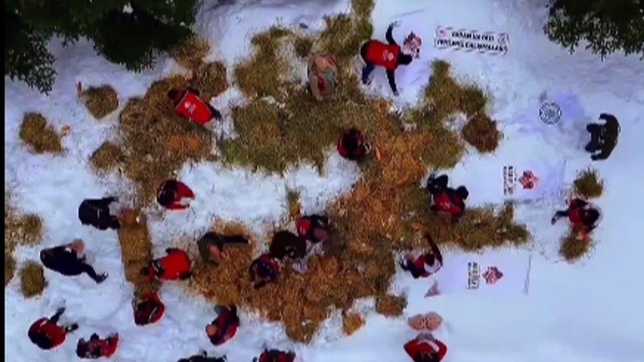 Çalışma kapsamında dağın farklı noktalarına yüzlerce kilo saman ve arpa bırakıldı.