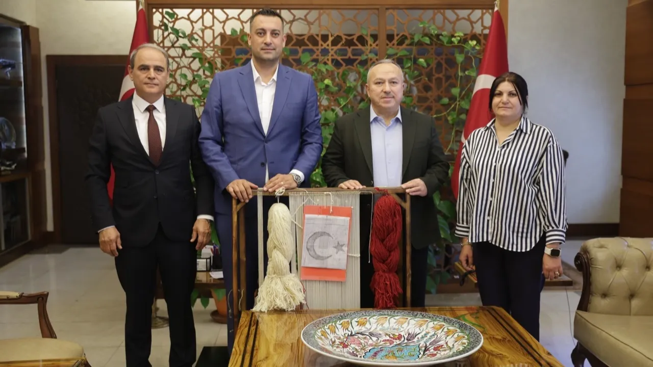 NEVŞEHİR (İGFA) - Nevşehir Belediyesi tarafından yürütülen proje çerçevesinde 29 Ekim Cumhuriyet Bayramı'na kadar tamamlanması planlanan Türk Bayrağı'na 1001 adet ilmek atılacak. Nevşehir Valisi Ali Fidan, Nevşehir Belediyesi Gençlik ve Spor Hizmetleri Müdürü Hasan Hüseyin İyilikli ile Halı Atölyesi Hocası Fatma Turgut'u makamında kabul etti.