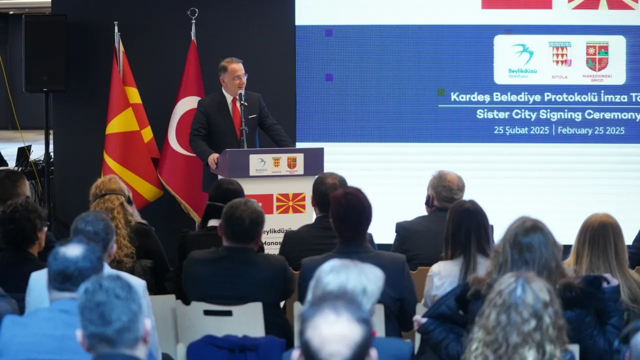 Konuşmasına hayatının bir kısmını Manastır’da geçiren Mustafa Kemal Atatürk’ün buradaki anılarına değinerek başlayan Beylikdüzü Belediye Başkanı Mehmet Murat Çalık, “Hepimiz çok iyi biliyoruz ki Manastır, balkanların kültürel ve siyasi tarihinde önemli yer tutan şehirlerinden biridir. Atatürk’ün Manastır Askeri İdadisi’nde geçirmiş olduğu yıllar onun siyasi ve sosyal bilincinin şekillendiği dönemdir. Beylikdüzü olarak hem Bitola hem de Makedonski Brod ile kardeş belediye olurken bu ruhu yaşatmak istiyoruz. Şehirlerimiz arasında dostluk ve iş birliğini bugünden geleceğe uzanan bir köprü olarak görüyoruz. Bizim ortak yaşanmışlıklarımız ve birbirine dokunan hikayelerimiz var. Resmi bir protokol gibi görünse de bu imzaları, ortak geçmişimizi ve mirasımızı sahiplenmek için verdiğimiz bir söz olarak kabul ediyorum” dedi.
