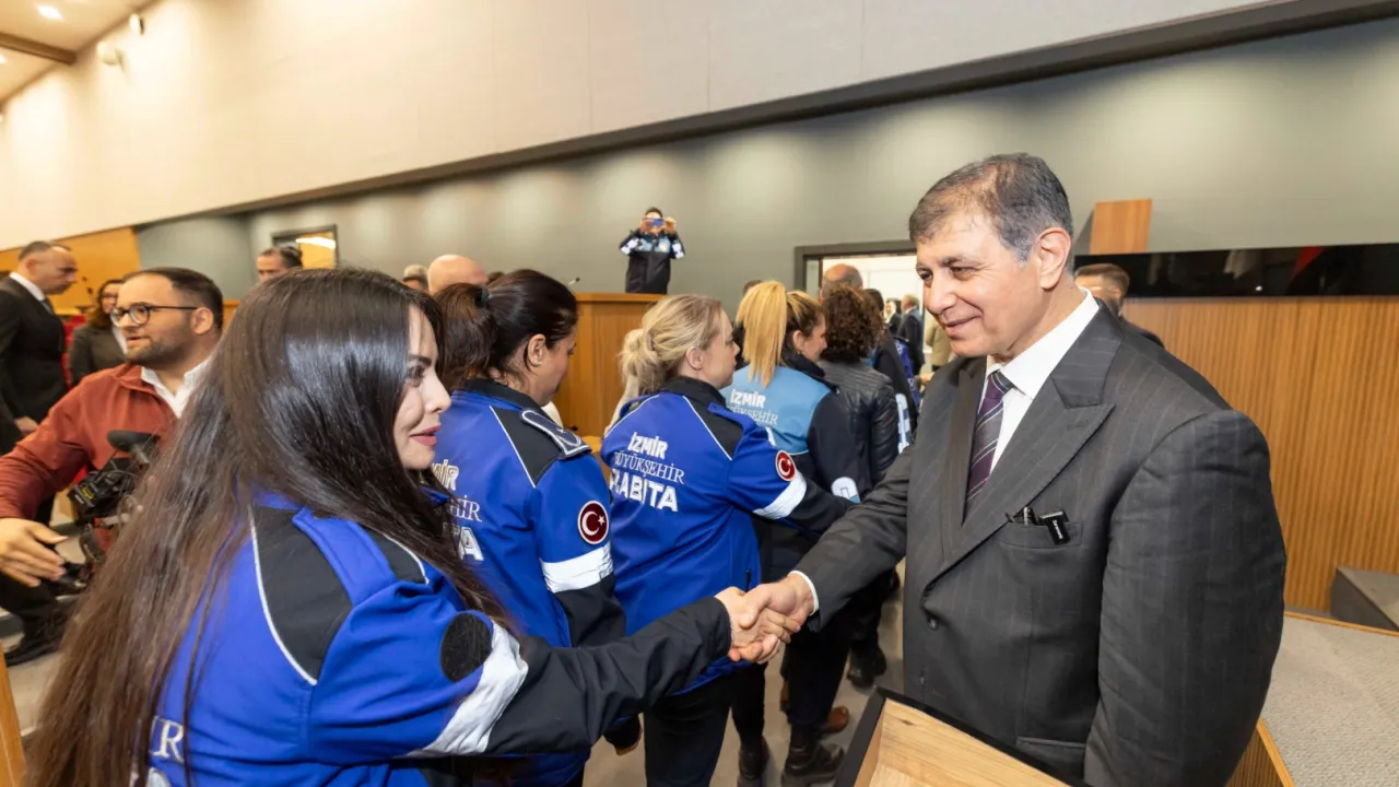 Konuşmasında önemli mesajlar veren İzmir Büyükşehir Belediye Başkanı Dr. Cemil Tugay, 'Sizler yalnızca çalışanlar değil, bu kentin her köşesindeki temsilcilerisiniz. Yaptığınız her işte sadece bir görevi yerine getirmiyor, aynı zamanda İzmir adına karar veriyorsunuz. Attığınız her adım, bu kurumun karakterini belirliyor. Bu belediyenin gücü binasından değil, sizlerin sorumluluk duygusundan geliyor. Her biriniz bu kentin vicdanısınız. Bu kurumun gerçek sahipleri sizlersiniz. Siz işinizi sahiplenmezseniz bu şehir eksik kalır. Sizin emeğiniz olmadan İzmir, sadece bir coğrafya olur. Ben tek başıma bir belediye başkanıyım; ancak sizlerle birlikte İzmir'i yöneten büyük bir ailenin parçasıyım. Bu kapıdan içeri girdiğinizde yalnızca mesaiye başlamıyorsunuz; İzmir'in umuduna, yarınlarına ve huzuruna da sahip çıkıyorsunuz' dedi.