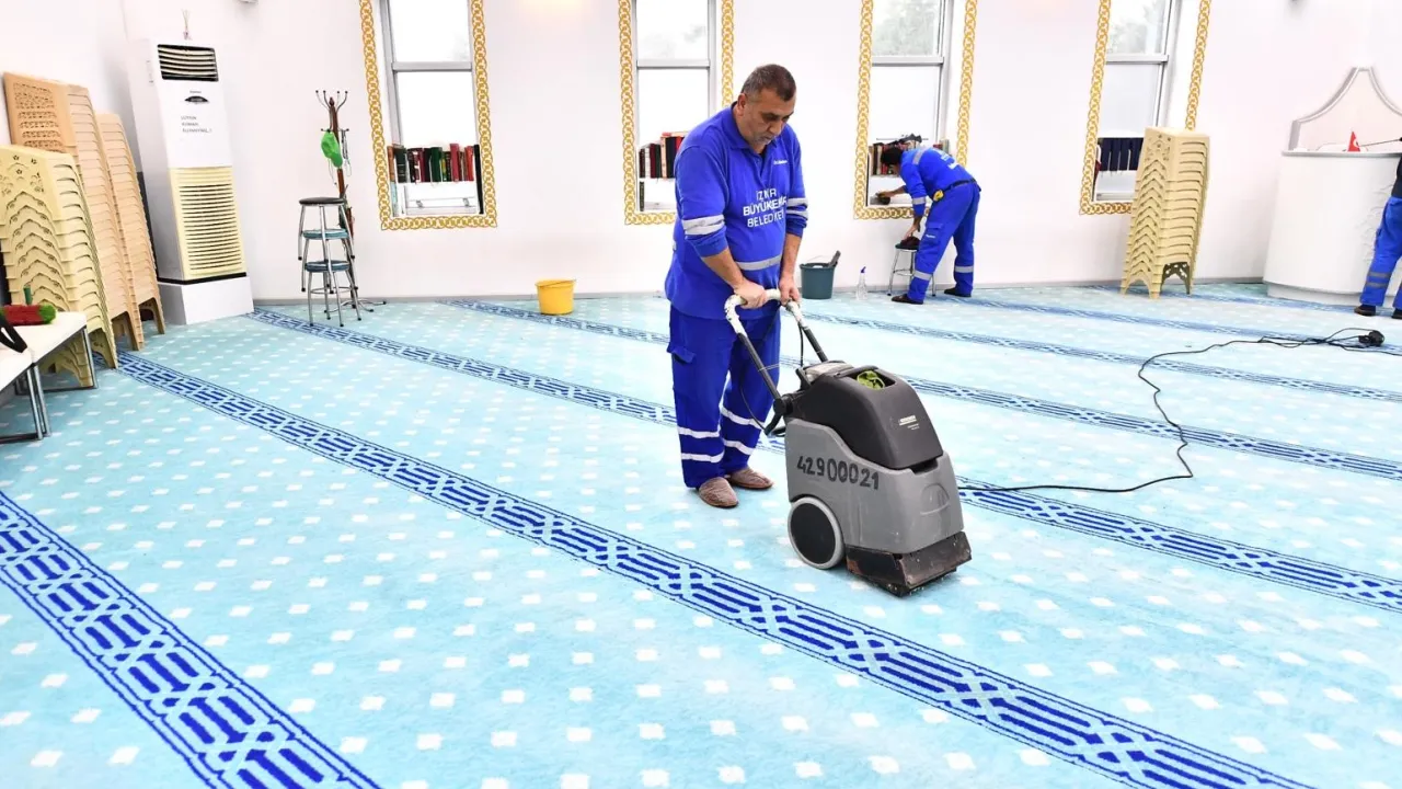 İzmir Büyükşehir Belediyesi, Ramazan ayı öncesi camilerde temizlik çalışmalarına hız verdi.İZMİR (İGFA) - İzmir Büyükşehir Belediyesi, yaklaşan Ramazan ayı nedeniyle camilerde yürüttüğü temizlik çalışmalarını hızlandırdı.