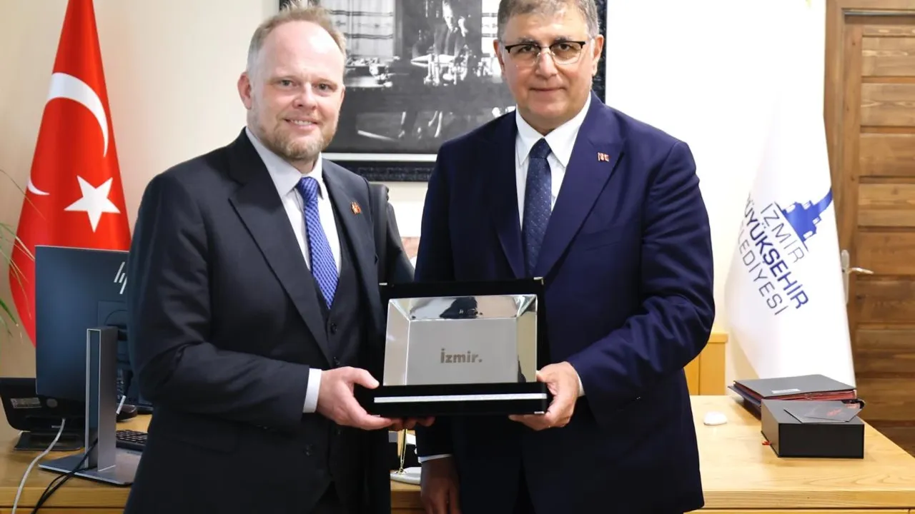 İzmir Büyükşehir Belediye Başkanı Dr. Cemil Tugay, Kanada Büyükelçisi Kevin Hamilton’ı makamında ağırladı. Görüşmede, iki ülke arasındaki iş birliklerinin artırılması ve karşılıklı kültürel ilişkiler gündeme geldi.İZMİR (İGFA) - İzmir Büyükşehir Belediye Başkanı Dr. Cemil Tugay, Kanada Büyükelçisi Kevin Hamilton’ı ağırladı.