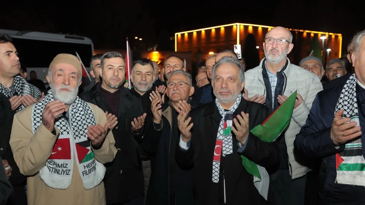 Büyükkılıç, zulme karşı dik duruş vurgusu yaparak, 'Mazlum coğrafyaların sesi olmak, zulme karşı dimdik durmak ve kardeşlerimizin yanında olduğumuzu haykırmak için bir aradaydık. Çünkü biz biliyoruz ki; sessiz kalmak, zulme ortak olmaktır. Dualarımız, kalbimiz ve desteğimiz daima Filistin halkıyla' diye konuştu.