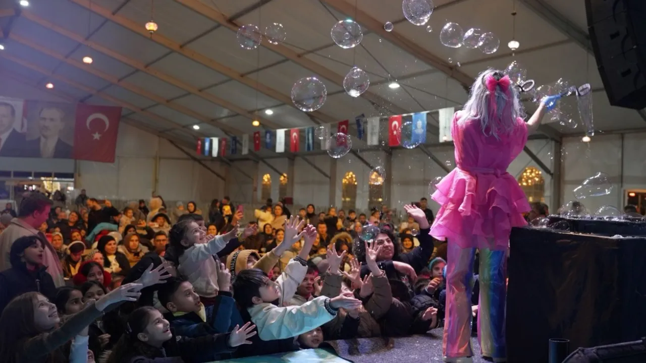 Günün en renkli etkinliği ise Bubble Şov oldu. Sahne önünde toplanan çocuklar şarkılar, şiirler ve oyunlara eşlik ederek gönüllerince dans etti. Sahneden gönderilen sabun baloncuklarını yakalamaya çalışan çocuklar kahkahalarıyla gönüllerde mutluluk yaşattı. Bu arada Ramazan şerbeti, patlamış mısır ve macundan oluşan Büyükşehir ikramları çadır dışındaki alanda vatandaşlara sunuldu.