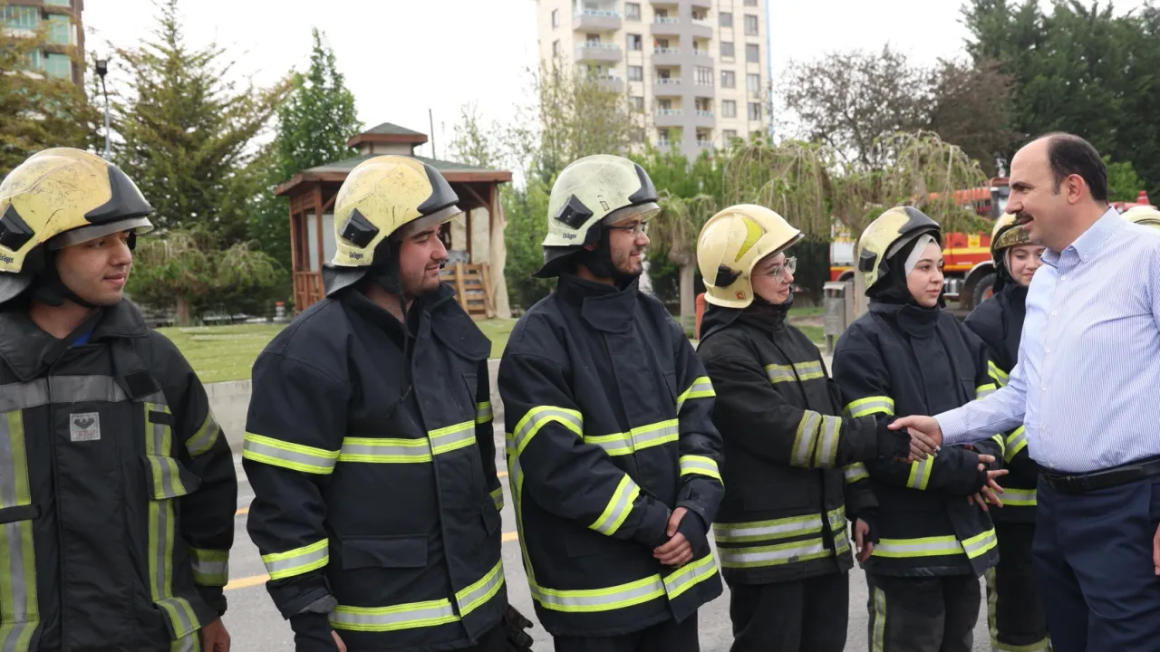 Konya Büyükşehir Belediye Başkanı Uğur İbrahim Altay, Büyükşehir Belediyesi İtfaiyesi Eğitim Merkezi’nde programa katılan öğrencilerle bir araya geldi.