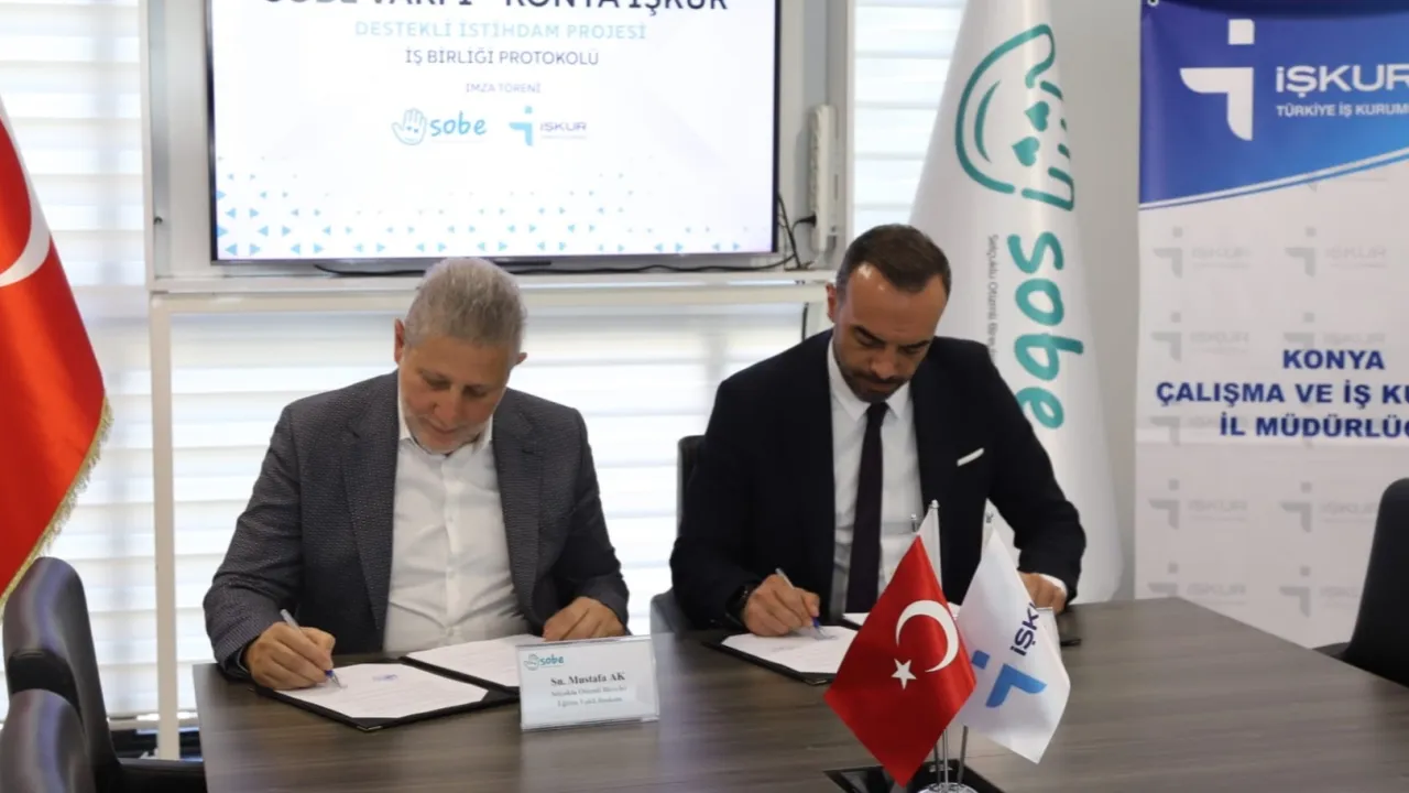Protokol töreni, Konya Çalışma ve İş Kurumu İl Müdürü Önder Çiftci ile SOBE Vakfı Başkanı Mustafa Ak'ın öncülüğünde gerçekleştirildi. İş birliği kapsamında, işverenlere; proje geliştirme, başvuru ve izleme-değerlendirme süreçlerinde rehberlik sağlanması bekleniyor.