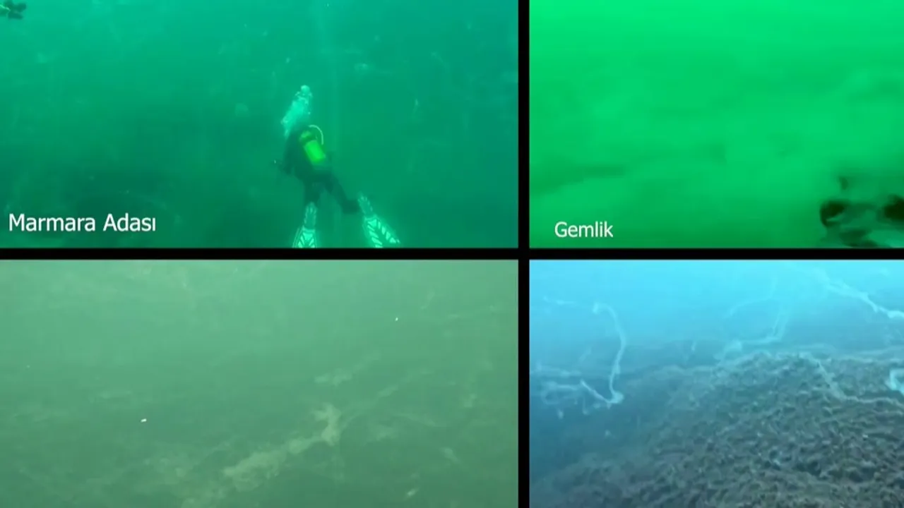 Çanakkale Boğazı girişinden Kocaeli Gölcük'e kadar farklı derinlik ve yoğunluklarda müsilaj tespit edildiğini belirten Prof. Dr. Sarı, son bir haftada çekilen görüntüleri paylaştı.