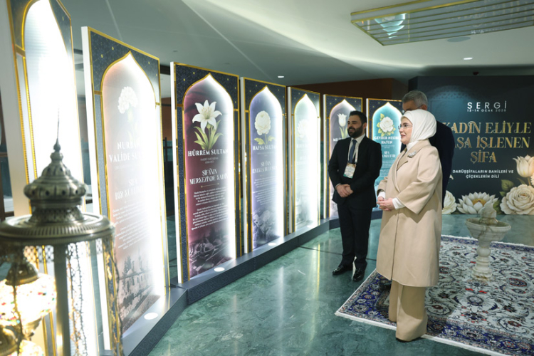 Program kapsamında hazırlanan 'Kadın Eliyle Taşa İşlenen Şifa-Darüşşifaların Banileri ve Çiçeklerin Dili' sergisini gezen Emine Erdoğan, eserler hakkında bilgi aldı. Programda dile getirilecek her düşünce ve ele alınacak her başlığın insan merkezli bir sağlık anlayışına ve 'Sağlıklı Türkiye Yüzyılı' vizyonuna önemli katkılar sunacağına inandığını belirten Emine Erdoğan, programın, bilimin güçlü ilerleyişiyle insanlığın asırlardır biriktirdiği hikmet mirası arasında yeni temas noktaları kurulmasının zemini olacağını dile getirdi.