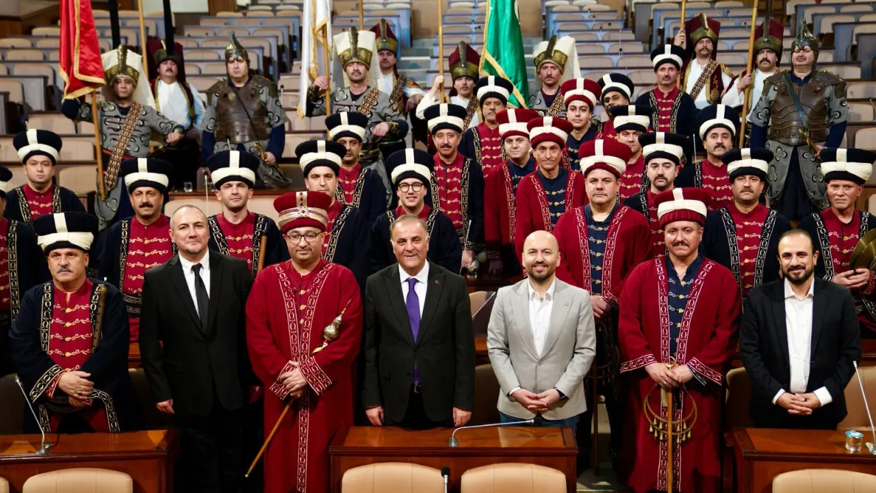 İSTANBUL (İGFA) - İstanbul Büyükşehir Belediyesi (İBB) Başkanvekili Nuri Aslan, A Milli Futbol Takımımızın, 2026 Dünya Kupası Play-OFF Turu Yarı Finali'nde Romanya'yı kendi sahamızda 1-0 mağlup ettiğimiz kritik maçta desteği ile tribünleri coşturan İBB Orkestraları'na bağlı Mehteran Bölüğü ile bir araya geldi.