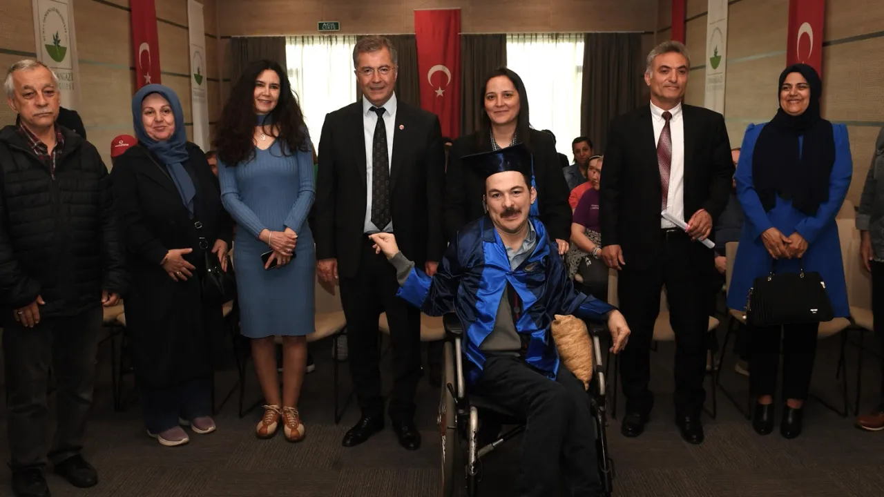 Osmangazi Belediyesi Engelliler Bakım Merkezi OBAM’da eğitim gören SerebralPalsi hastası Fırat Kıpçak (38) öğretmenlerinin yardımıyla girdiği sınavları kazanarak ortaokul diploması aldı.BURSA (İGFA) - Engeline rağmen hayata küsmeyip yaşam enerjisini kaybetmeyen Fırat Kıpçak, uzun yıllardır Osmangazi Belediyesi Engelliler Bakım Merkezi OBAM’da eğitim görüyor. Özel gereksinimli Kıpçak, öğretmenlerine açık öğretim sınavlarına girerek diploma almak istediğini söyledi. Öğretmenlerinin yönlendirmesiyle ders çalışmaya başlayan Kıpçak, açık öğretim sınavlarına girerek ilkokul diplomasını aldı. Diplomasına kavuşan Kıpçak, öğretmenlerine ortaokul diplomasını da almak istediğini anlattı. Kıpçak, 15 aylık sıkı bir çalışmanın ardından bu sınavları da geçerek ortaokul diploması almaya hak kazandı.