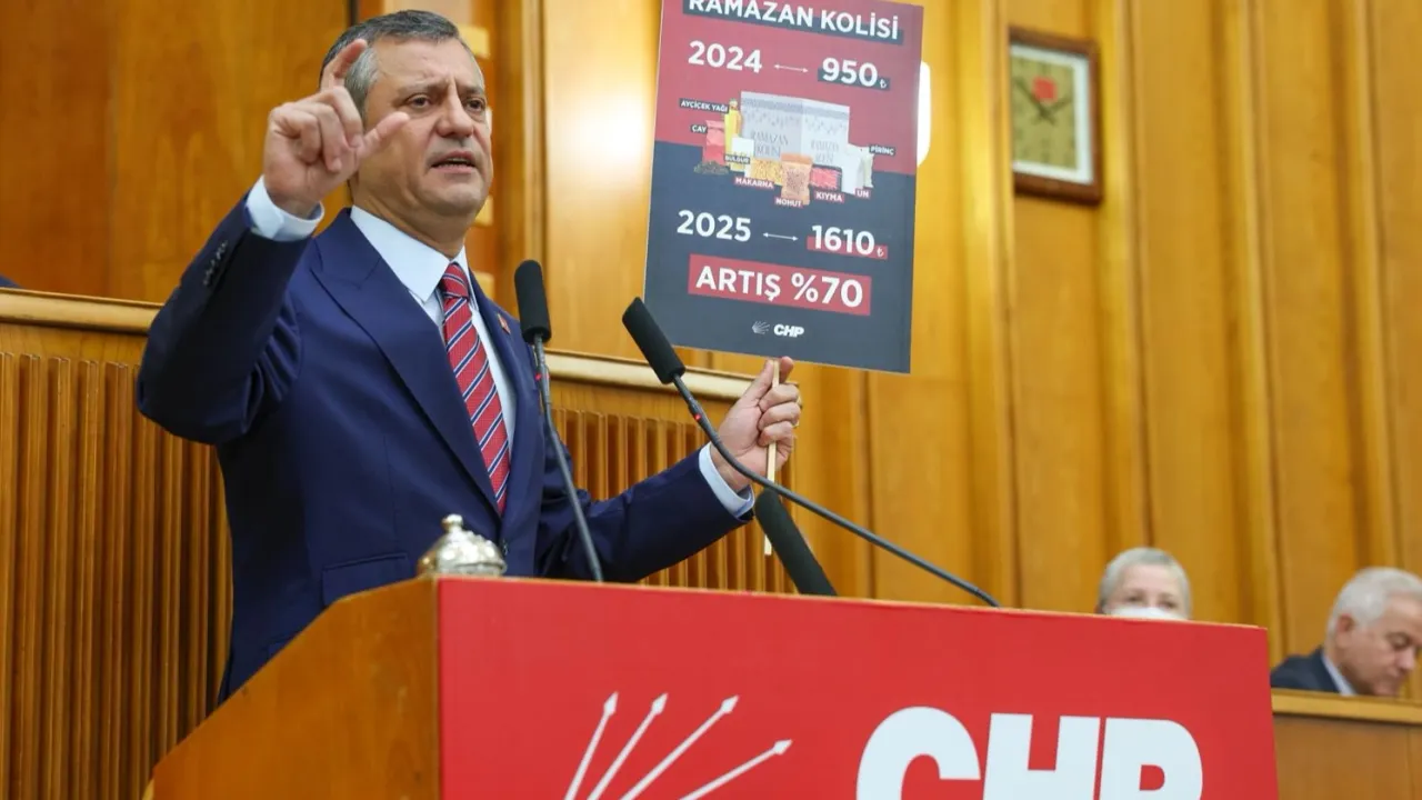 Partisinin grup toplantısında 2024 yılı ile 2025 yılı Ramazan kolilerini karşılaştıran CHP Genel Başkanı Özgür Özel, 2024'te 950 TL olan koli içeriğindeki fiyatın bu yıl bin 610 TL olduğunu belirtti. Özel, Türkiye'de yaşanan sivil darbe girişimine de dikkati çekti.ANKARA (İGFA) - CHP Genel Başkanı Özgür Özel, partisinin haftalık TBMM Grup toplantısında gündeme ilişkin değerlendirmelerde bulundu.