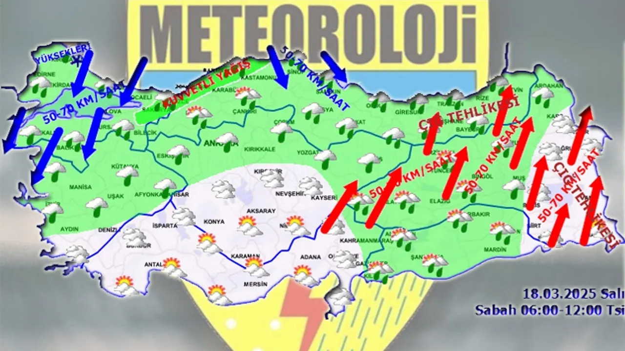 Mart ayının ilk yarısı yaz tadında geçerken 18 Mart - 23 Mart tarihleri arasında kış koşullarının etkili olması bekleniyor. Sıcaklıklar mevsim normallerinin 6-8 derece altında seyredecek. Türkiye genelinin kuvvetli yağış, rüzgar, çığ, buzlanma ve don olaylarına karşı dikkatli olunması istendi.ANKARA (İGFA) - Meteoroloji Genel Müdürlüğü, 18 Mart Salı gününe ilişkin hava tahmin raporunu yayımladı.